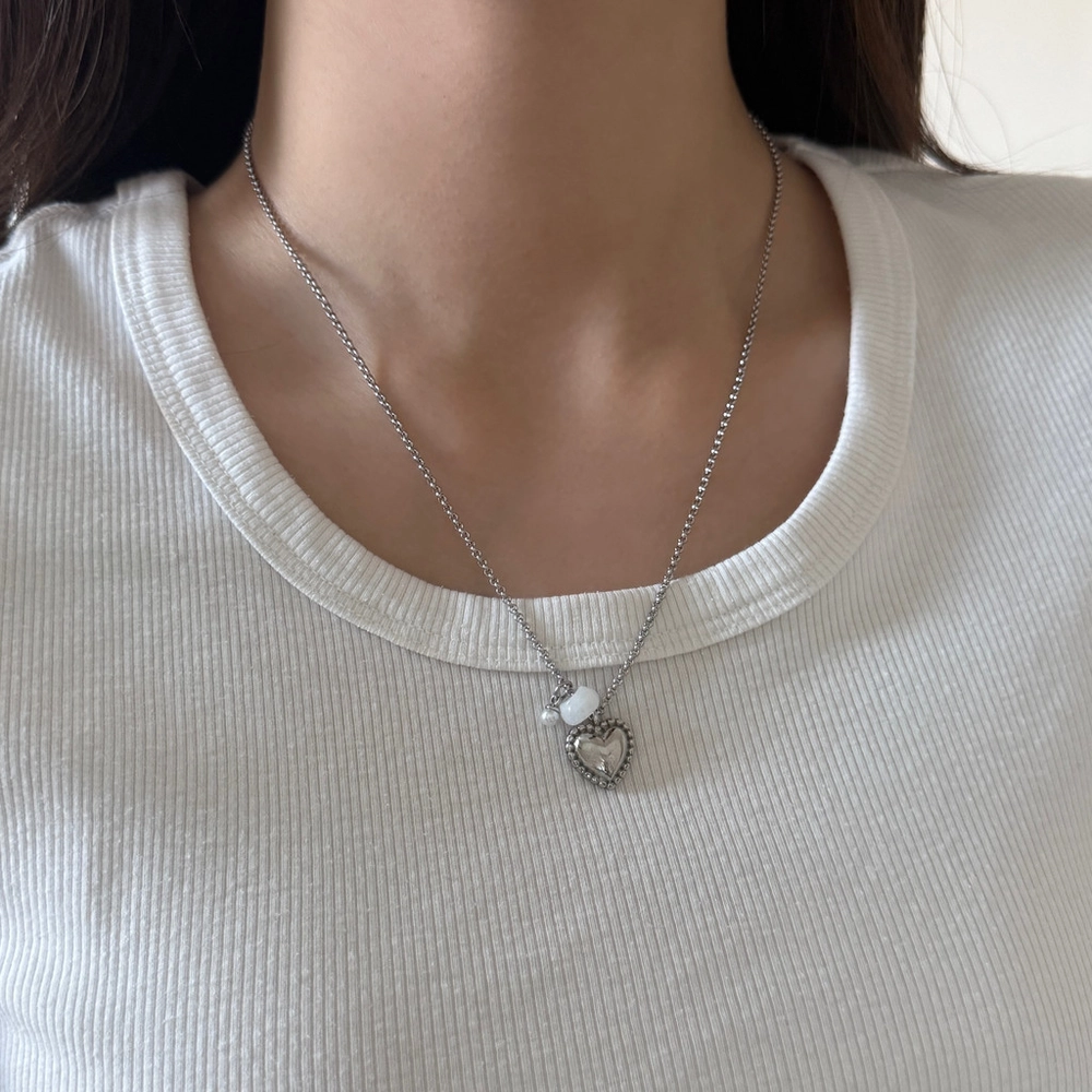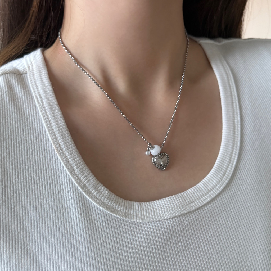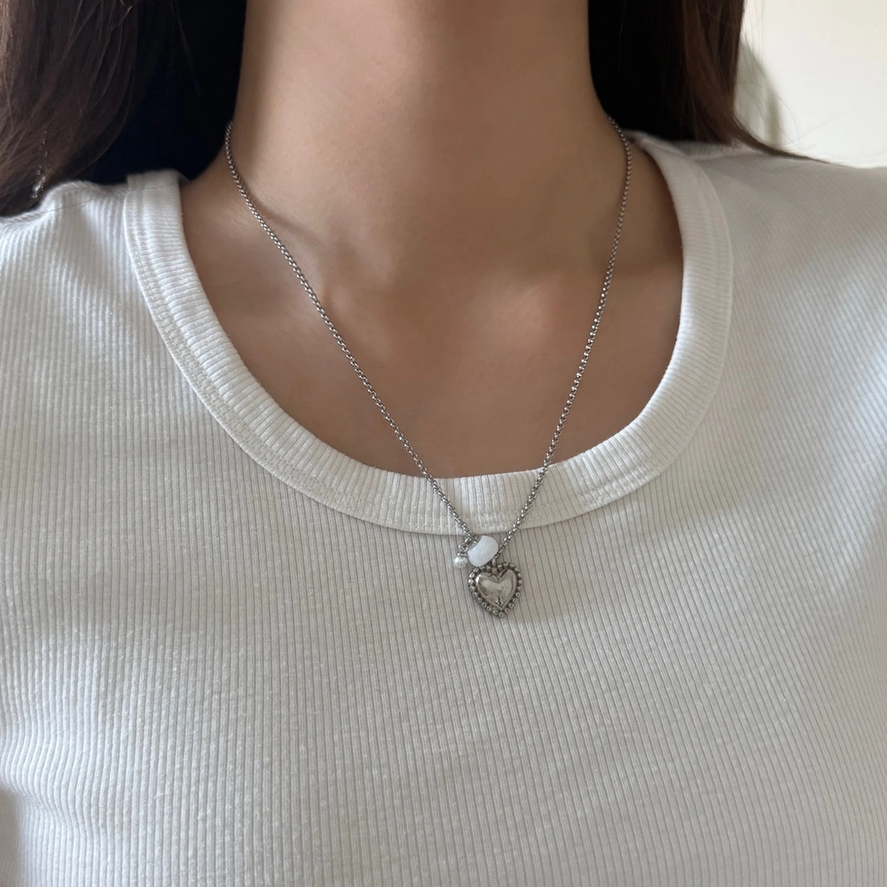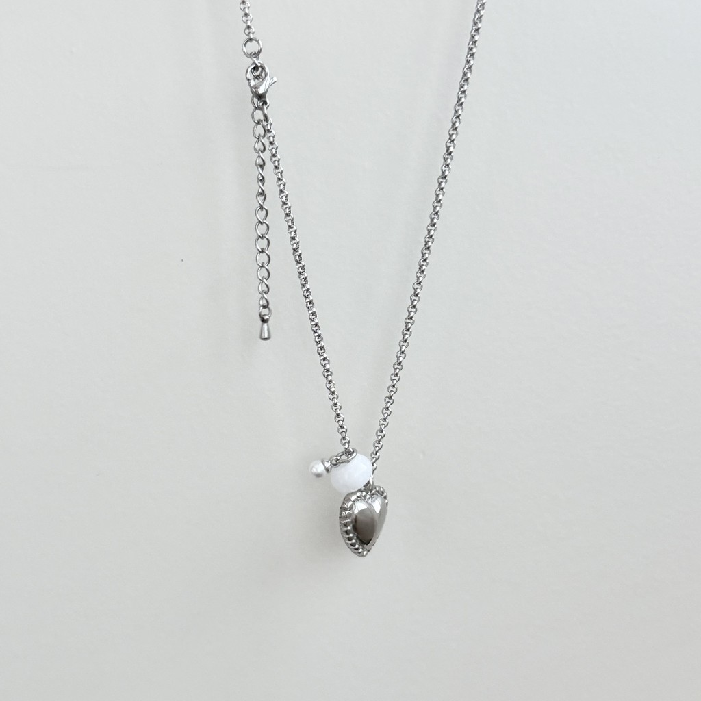 - 하트 화이트 원석 목걸이
